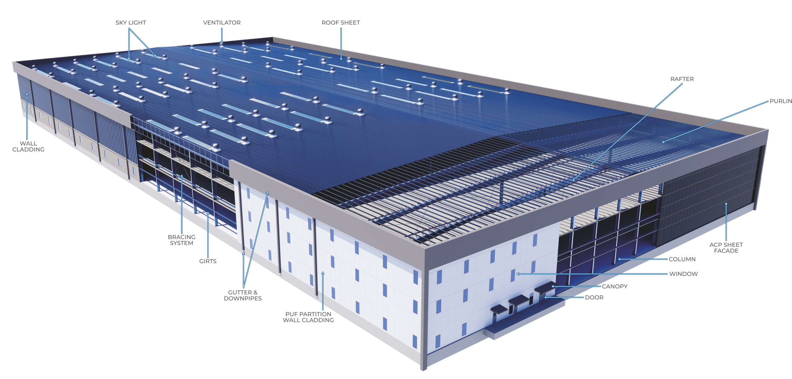 The main parts of a Pre-Engineered Building (PEB) are generally divided into Primary